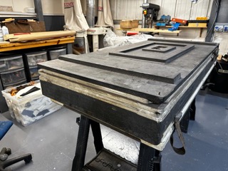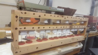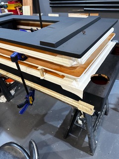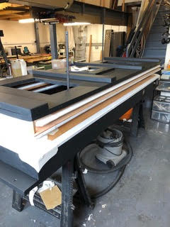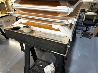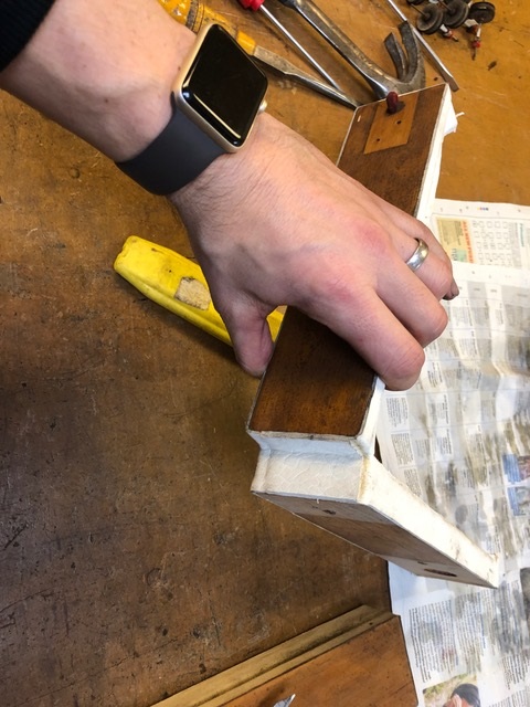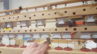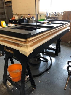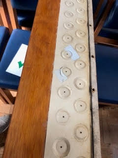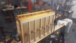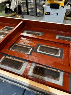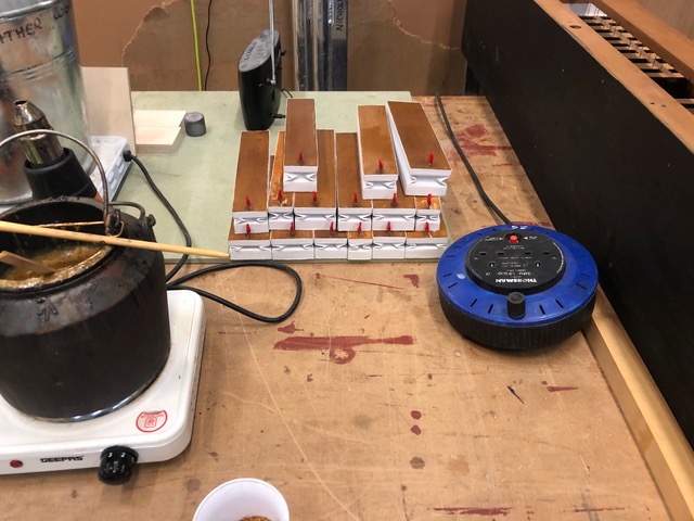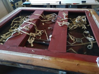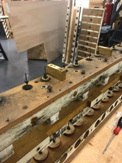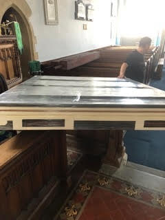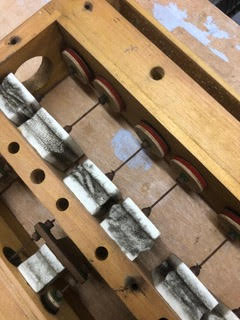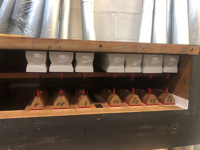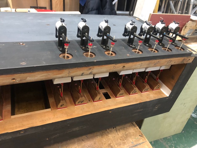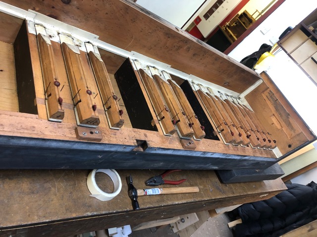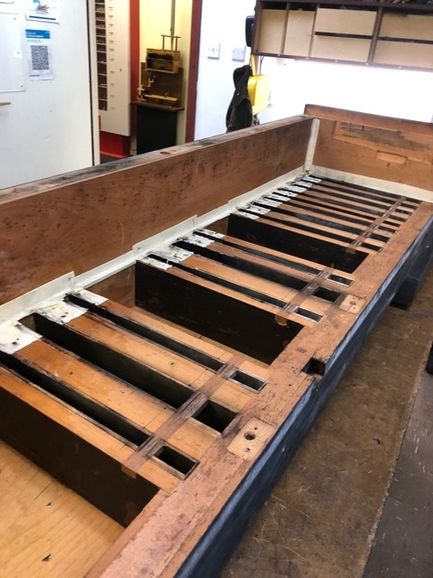 Organ assembly – the pedal Bourdon chest re-palleted and connected to the action below.